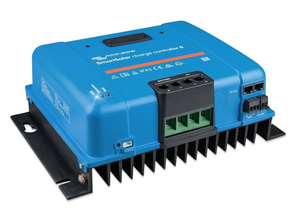 Victron SmartSolar 250/85-Tr VE.Can MPPTRobustní a rychlý MPPT regulátor s VE.Can pro náročné podmínky s napětím panelů až 250 V, nabíjecí proud 85 A. Baterie 12/24/48 V, FV max. 1200/2400/4900 Wp. Vestavěné Bluetooth a konektor pro zásuvný displej.