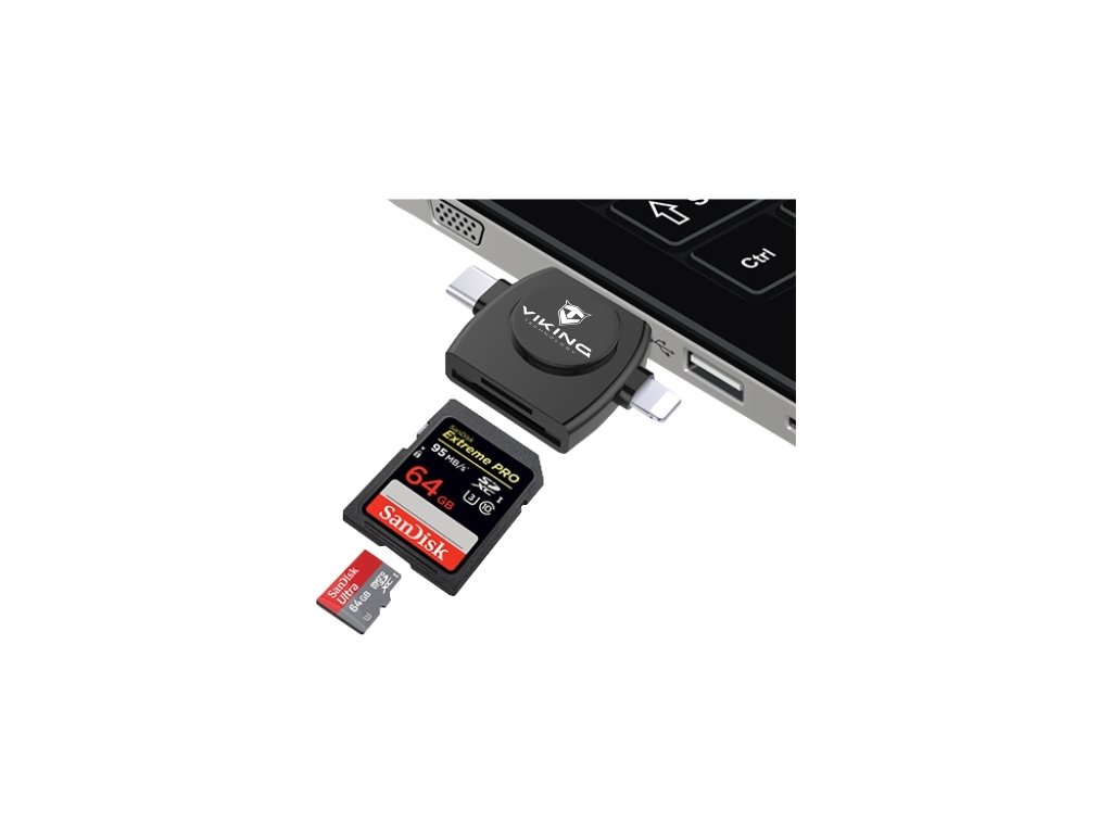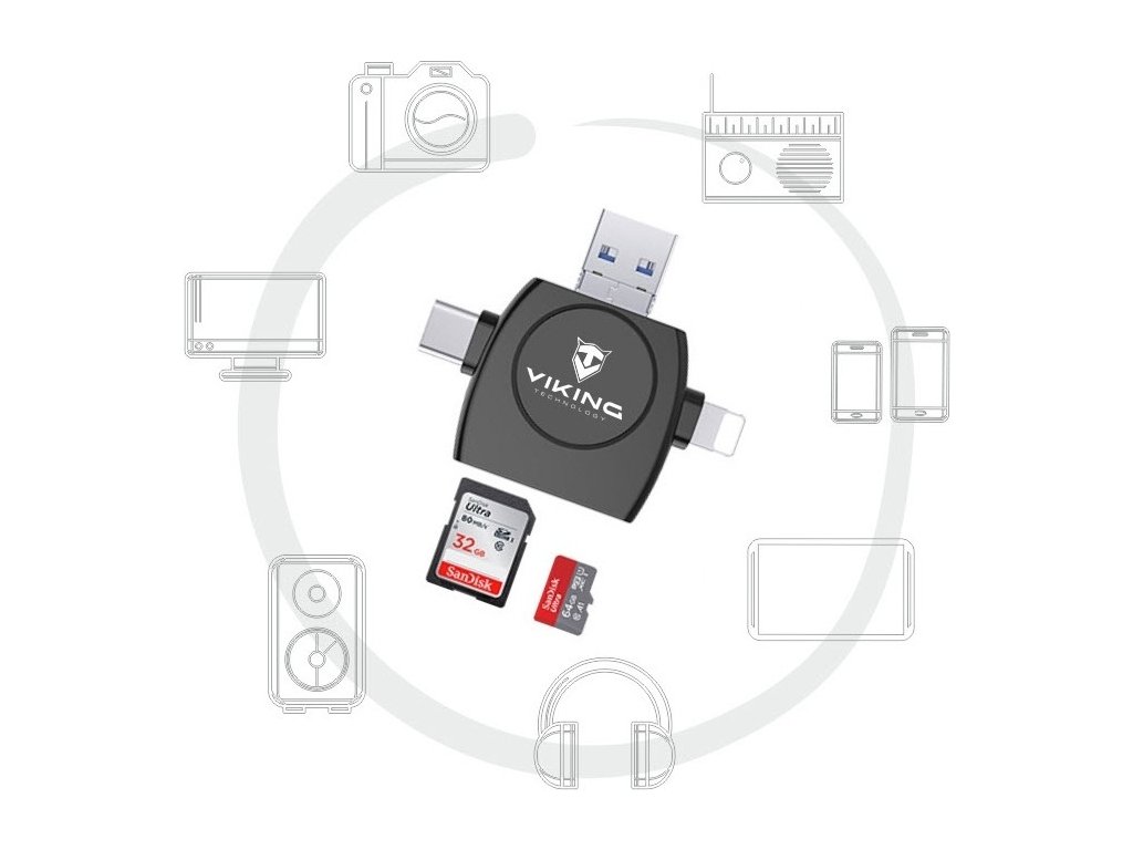 VIKING ČTEČKA PAMĚŤOVÝCH KARET V4 USD3.0 4v1 S KONCOVKOU APPLE LIGHTNING/MICRO USB/USB/USB-C