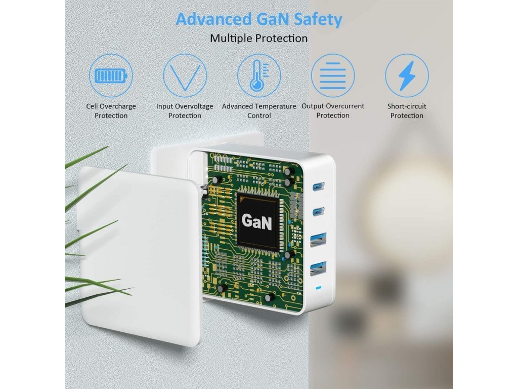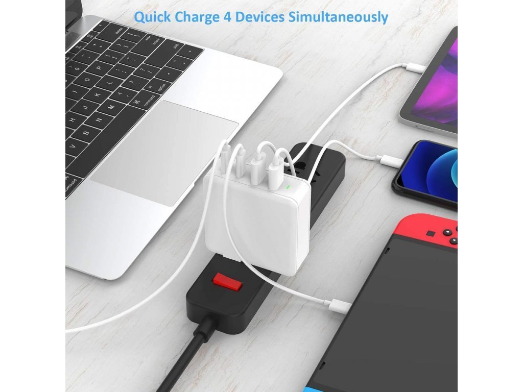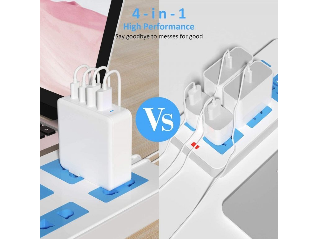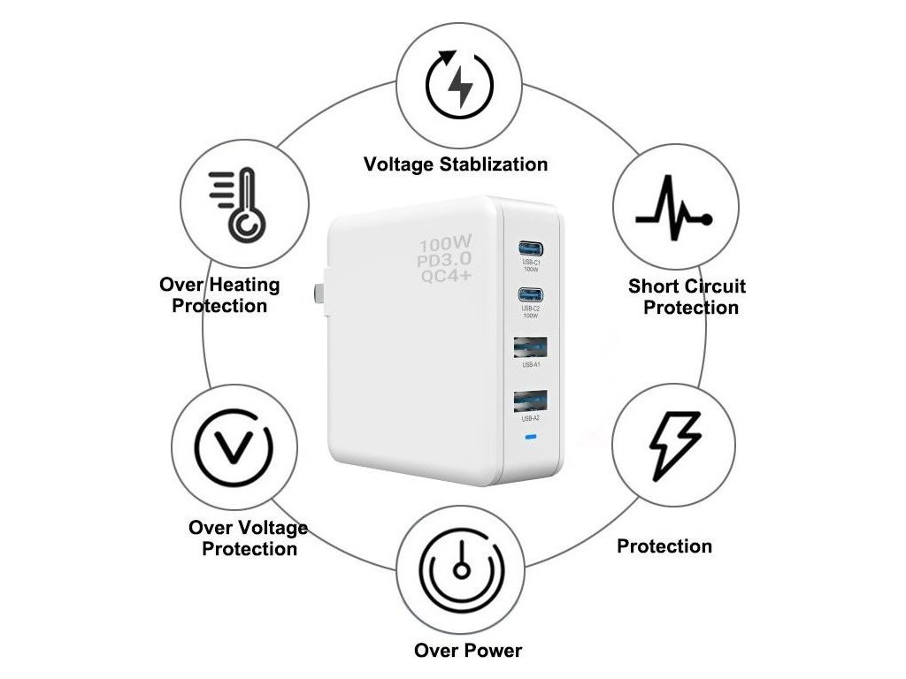 Rychlonabíjecí, síťová USB stanice až pro 4 USB zařízení (2x USB-C, 2x USB-A) o celkovém výkonu 100W s podporou technologií QC4+ a PD3.0. Elektronika obsahuje inteligentní čip pro identifikaci zařízení a optimalizaci nabíjecího proudu a napětí.