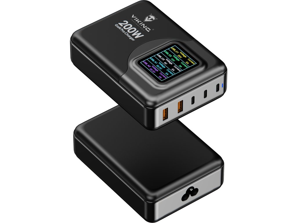Viking USB GaN charger 200W PD Pro představuje budoucnost nabíjení. S podporou rychlého nabíjení až 200W budete mít vždy dostatek energie, ať jste kdekoli.
