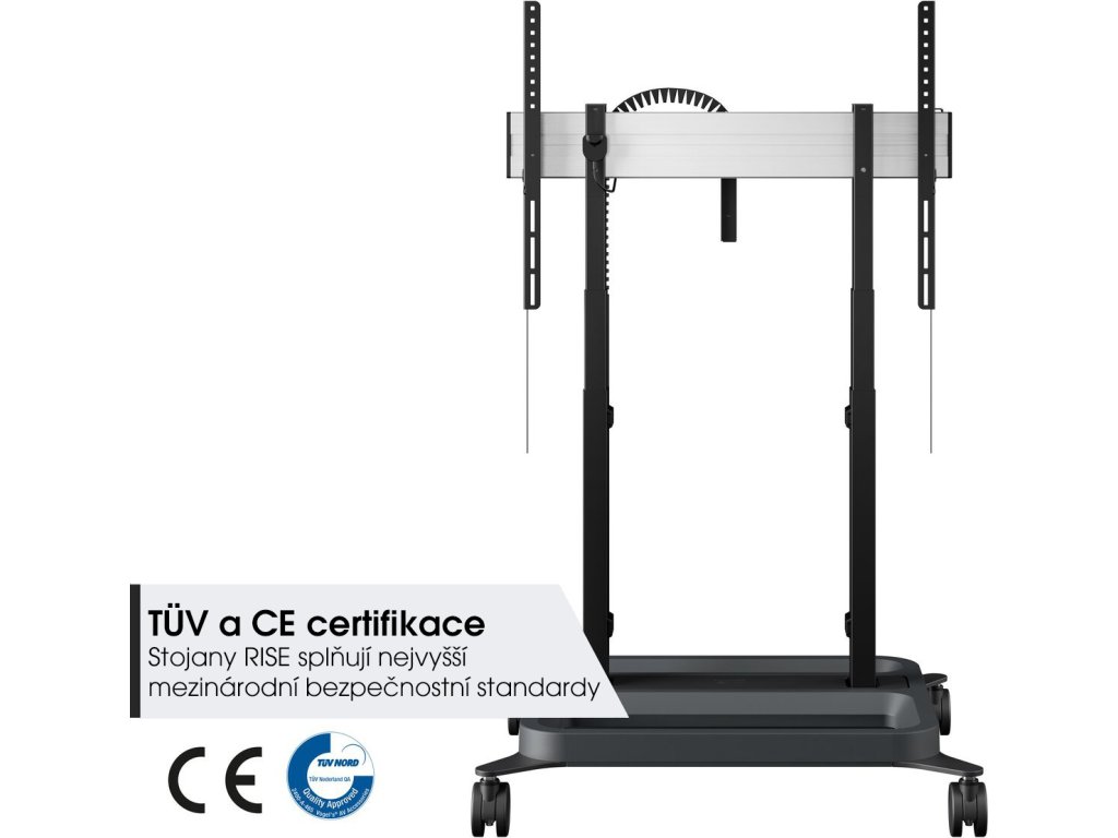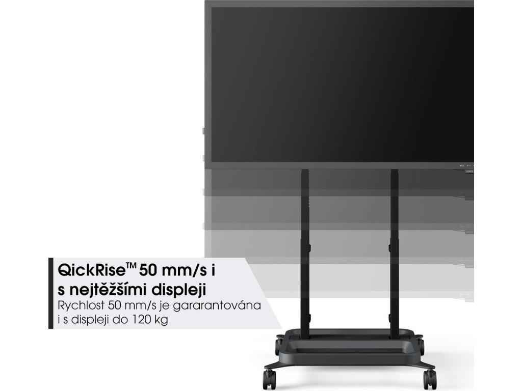 Pojízdný podlahový stojan RISE 5205 s motorizovaným zdvihem je určen pro interaktivní ploché displeje s úhlopříčkou až 98" (max. 120 kg).
