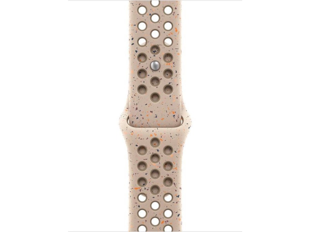 Tenhle sportovní řemínek Nike má vylisované otvory pro větší vzdušnost, je odolný, pevný a přitom krásně poddajný. Obsahuje barevné vločky vytvářející náhodné vzory, takže každý řemínek je originál. Jeho hladký, hutný materiál se elegantně ovine kolem zápěstí a příjemně sedí. A nově se zapíná na hliníkový kolíček s matným povrchem.
