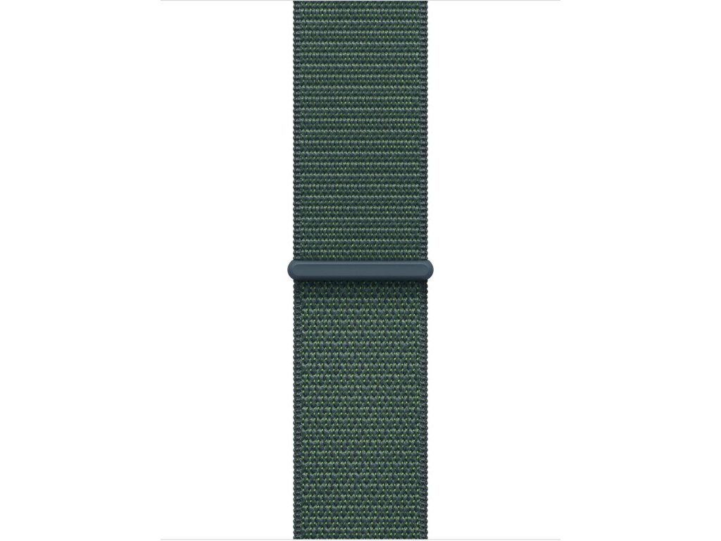 Tenhle řemínek je uhlíkově neutrální. 45 % z váhy provlékacího sportovního řemínku tvoří recyklované materiály, 100 % elektřiny použité při výrobě pochází z čistých zdrojů a 50 % nebo víc ze všech uhlíkově neutrálních produktů Apple nepřepravujeme letadly.