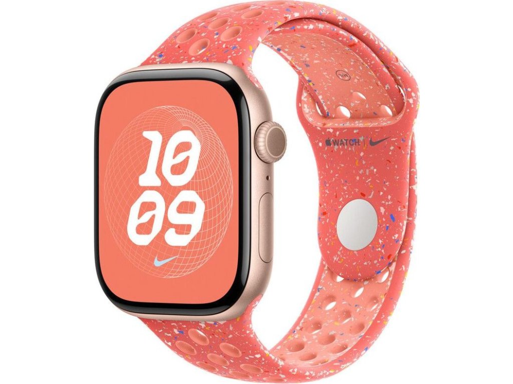 Tenhle sportovní řemínek Nike má vylisované otvory pro větší vzdušnost, je odolný, pevný a přitom krásně poddajný. Obsahuje barevné vločky vytvářející náhodné vzory, takže každý řemínek je originál. Jeho hladký, hutný materiál se elegantně ovine kolem zápěstí a příjemně sedí. A nově se zapíná na hliníkový kolíček s matným povrchem.