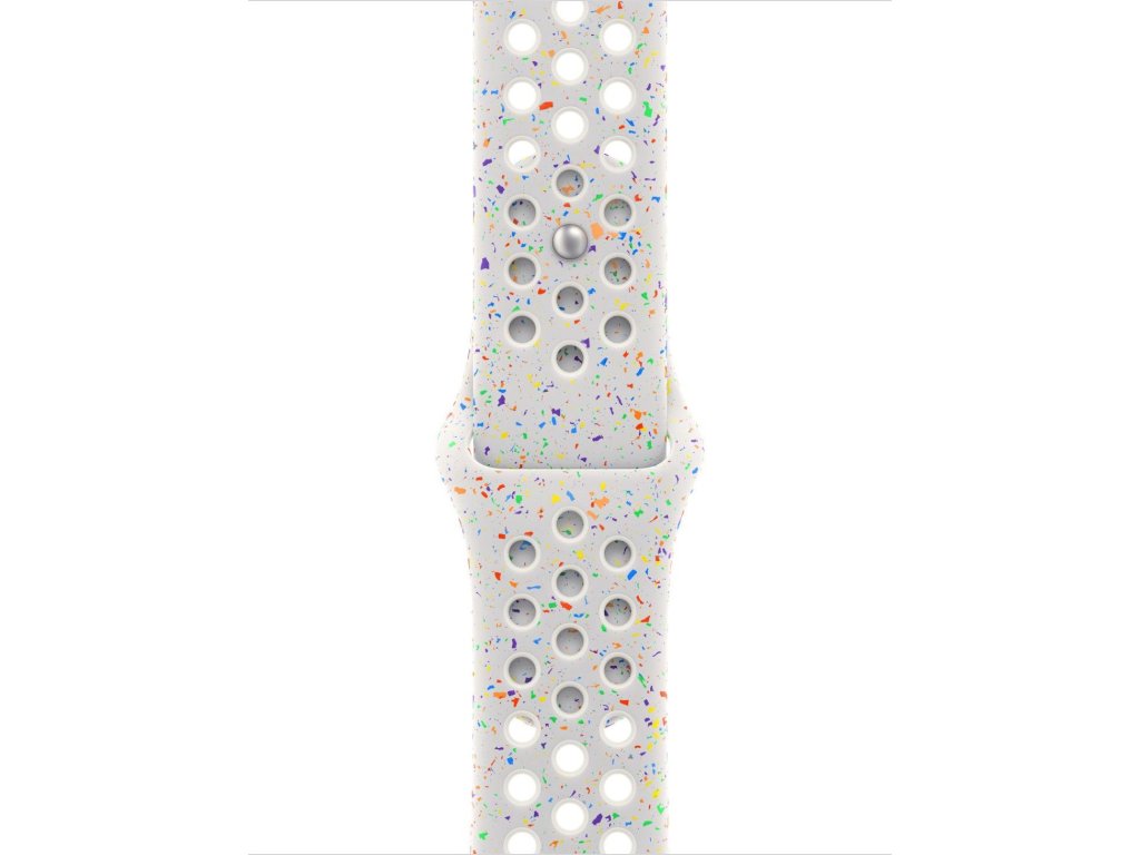 Tenhle sportovní řemínek Nike má vylisované otvory pro větší vzdušnost, je odolný, pevný a přitom krásně poddajný. Obsahuje barevné vločky vytvářející náhodné vzory, takže každý řemínek je originál. Jeho hladký, hutný materiál se elegantně ovine kolem zápěstí a příjemně sedí. A nově se zapíná na hliníkový kolíček s matným povrchem.