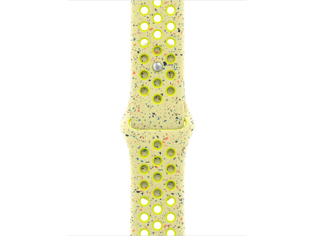 Tenhle sportovní řemínek Nike má vylisované otvory pro větší vzdušnost, je odolný, pevný a přitom krásně poddajný. Obsahuje barevné vločky vytvářející náhodné vzory, takže každý řemínek je originál. Jeho hladký, hutný materiál se elegantně ovine kolem zápěstí a příjemně sedí. A nově se zapíná na hliníkový kolíček s matným povrchem.