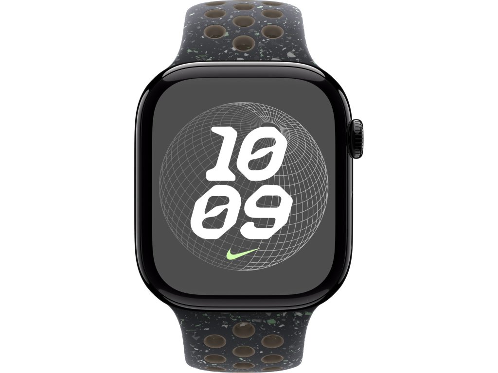 Tenhle sportovní řemínek Nike má vylisované otvory pro větší vzdušnost, je odolný, pevný a přitom krásně poddajný. Obsahuje barevné vločky vytvářející náhodné vzory, takže každý řemínek je originál. Jeho hladký, hutný materiál se elegantně ovine kolem zápěstí a příjemně sedí. A nově se zapíná na hliníkový kolíček s matným povrchem.