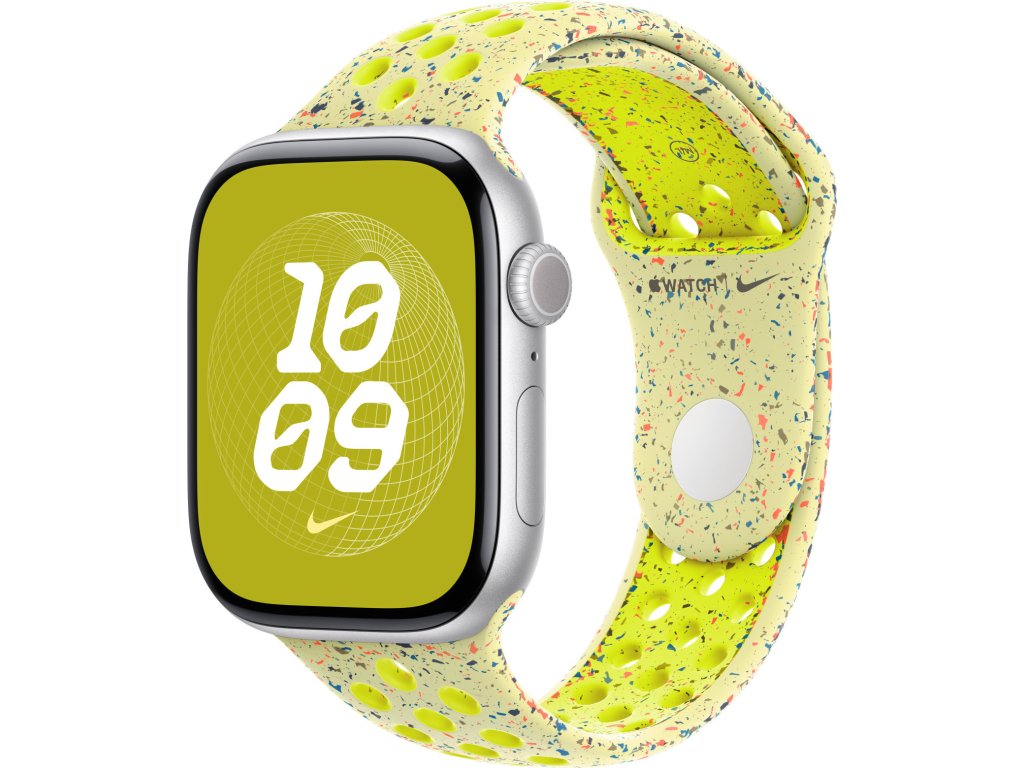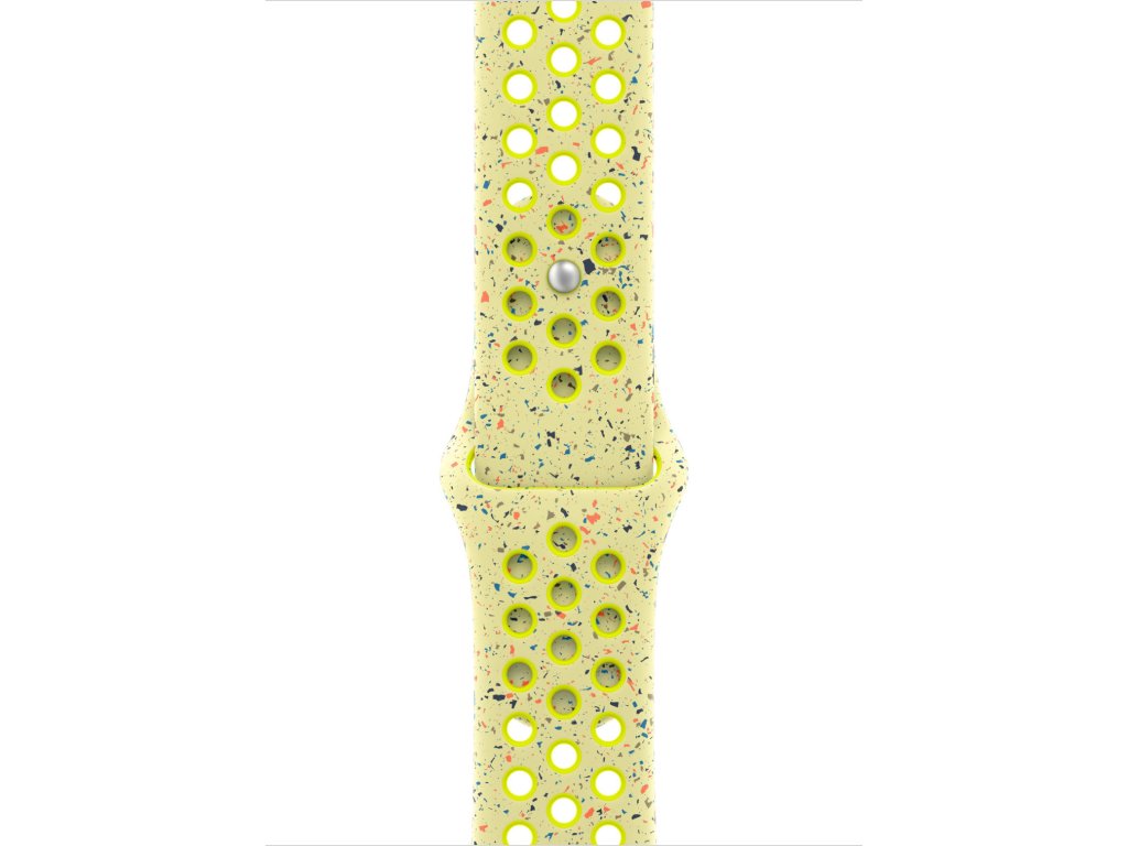 Tenhle sportovní řemínek Nike má vylisované otvory pro větší vzdušnost, je odolný, pevný a přitom krásně poddajný. Obsahuje barevné vločky vytvářející náhodné vzory, takže každý řemínek je originál. Jeho hladký, hutný materiál se elegantně ovine kolem zápěstí a příjemně sedí. A nově se zapíná na hliníkový kolíček s matným povrchem.