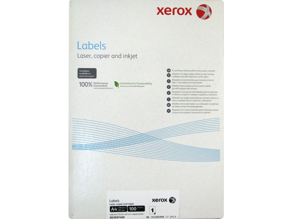 Xerox Papír - Bílé samolepicí štítky pro černobílý tisk - ostré rohy ( Labels 1UP 210x297, 100 listů, A4)