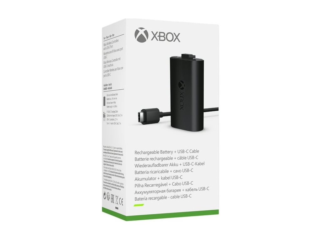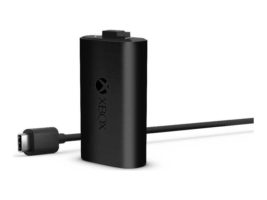Dobíjecí baterie Xbox + USB-C kabel, plné nabití za 4 hodiny, nabíjí se během hraní i ve stand-by režimu, až 30 hodin provozu na jedno nabití, kompatibilní pouze s originálními gamepady Xbox Wireless Controller s USB-C konektorem.