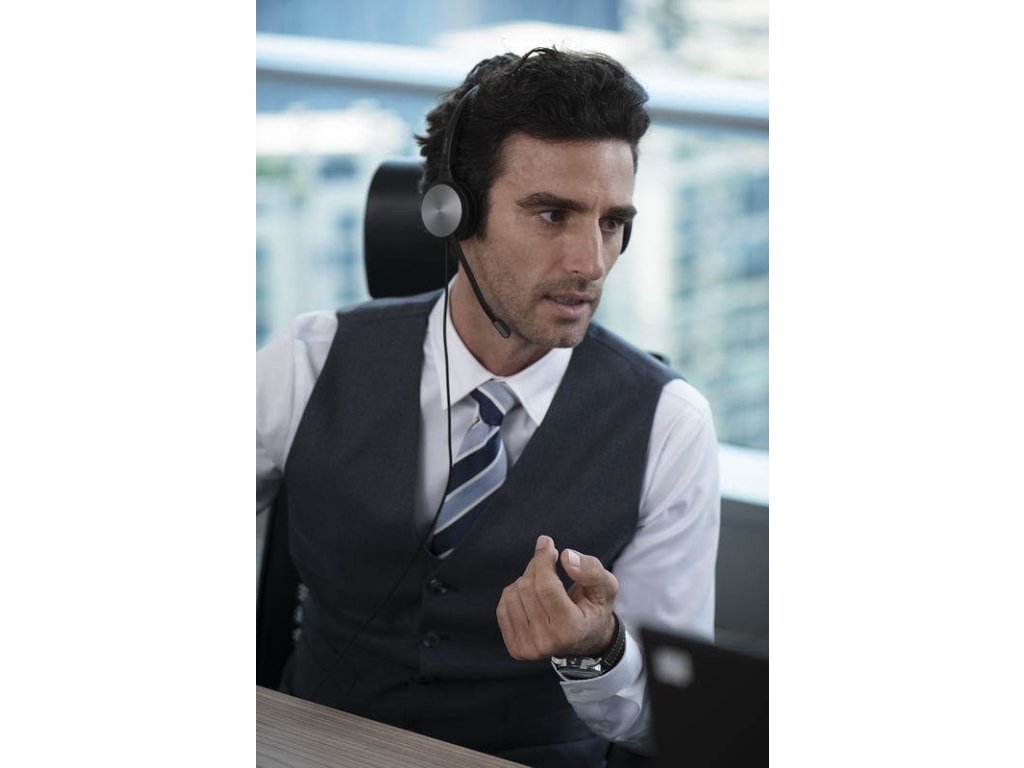 Díky stylu over-the-head, ultralehkým materiálům a koženým polštářkům na uší, jsou pro vaši hlavu a uši pohodlné pro dlouhé konferenční hovory a celodenní používání.