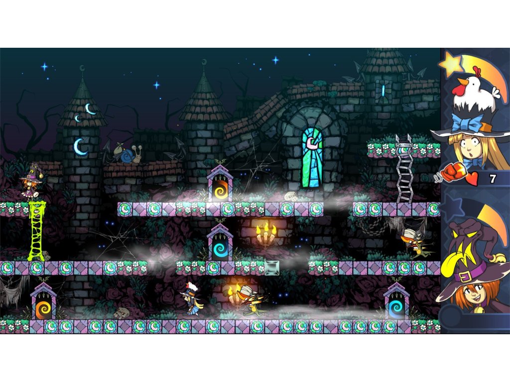 Hrajte jako Praline nebo Vanille, dvě hlavní hrdinky, přes více než 50 úrovní v5+ jedinečných světech. Pokud je cestapříliš složitá, můžete spolupracovat s přítelem na rozdělené obrazovce. Ale dávejte si pozor, budete sdílet počet životů. Také vaše kouzla nebo zbraně nerozlišují, zda je to přítel nebo nepřítel.